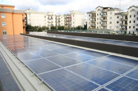 L'impianto fotovoltaico è stato realizzato sul tetto piano di un centro benessere sito a Putignano (Bari). I moduli sono esposti a SUD ed hanno un'inclinazione di circa 20° sull'orizzontale.
