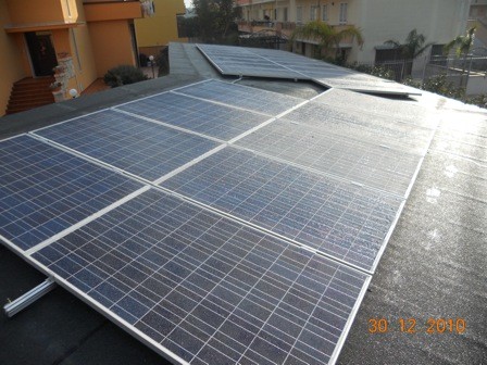 L'impianto  fotovoltaico è stato  realizzata su pensilina parcheggio appositamente progettata e  realizzata presso un'abitazione sita in Turi (Bari). I moduli sono  esposti a SUD ed hanno un'inclinazione di  15°  sull'orizzontale.   Potenza impianto: 5,98 kWp Moduli: n°26 della potenza di 230 Wp Tipologia: silicio policristallino Inverter: n°1 da 6 kW Entrata in esercizio: 26/01/2011