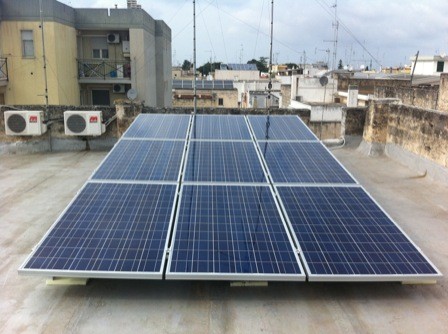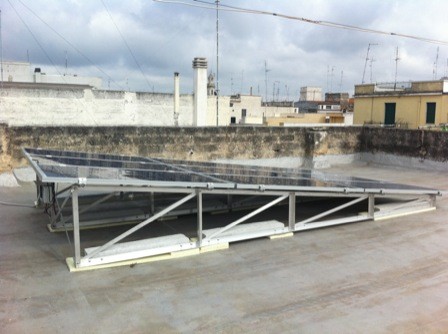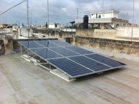 L'impianto               fotovoltaico è stato realizzato sul tetto piano di       un'azienda      sita    in Valenzano (BA). I moduli sono      esposti a SUD ed hanno       un'inclinazione di 15° sull'orizzontale.    Potenza impianto: 2,25 kWp Moduli: n. 9 della potenza di 250 Wp Tipologia: silicio policristallino Inverter: n. 1 da 3 kW Entrata in esercizio: 27/04/2011