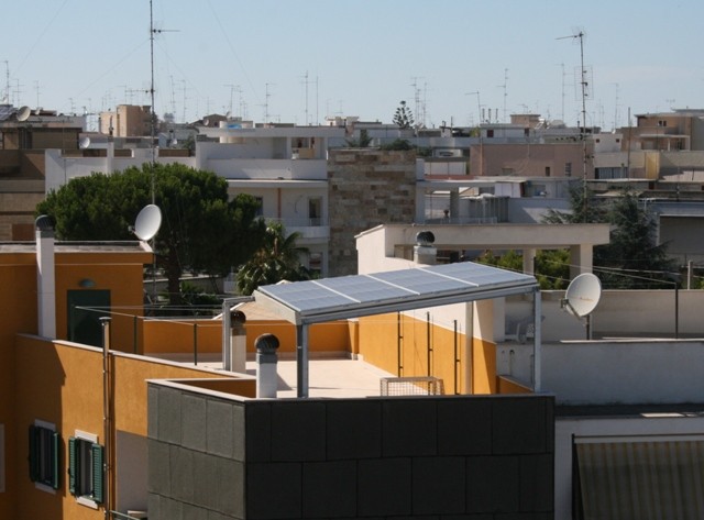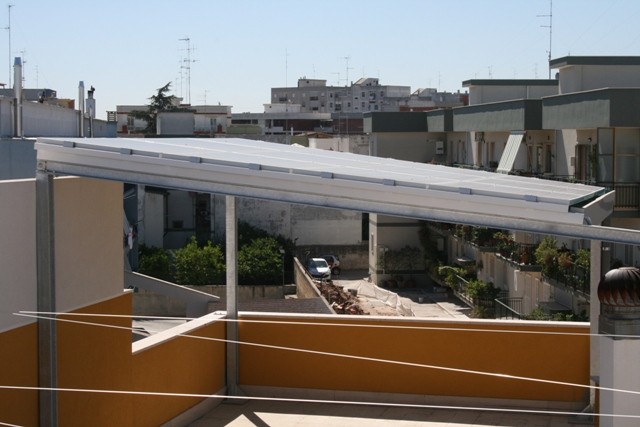 L'impianto fotovoltaico è stato realizzato su pergola di un'abitazione sita a Modugno (Bari). I moduli sono esposti a SUD-OVEST ed hanno un'inclinazione di circa 8° sull'orizzontale.